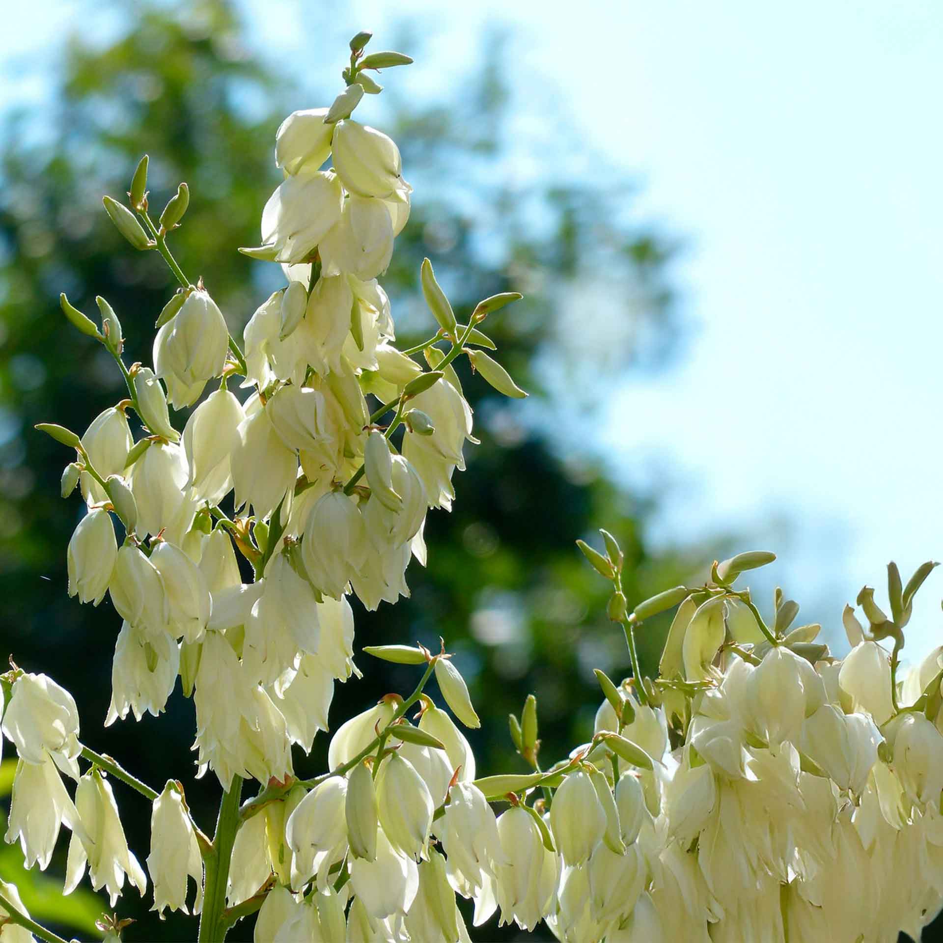 • ABOUT THIS SHRUB: Native evergreen perennial shrub hardy for USDA Zones 4–10. Can mature to 3–4 ft tall and wide. Thrives in full sun to partial shade and well-draining soil. Features stiff, sword-shaped leaves and an annual flower stalk up to 8 ft tall covered in creamy white, bell-shaped blooms.