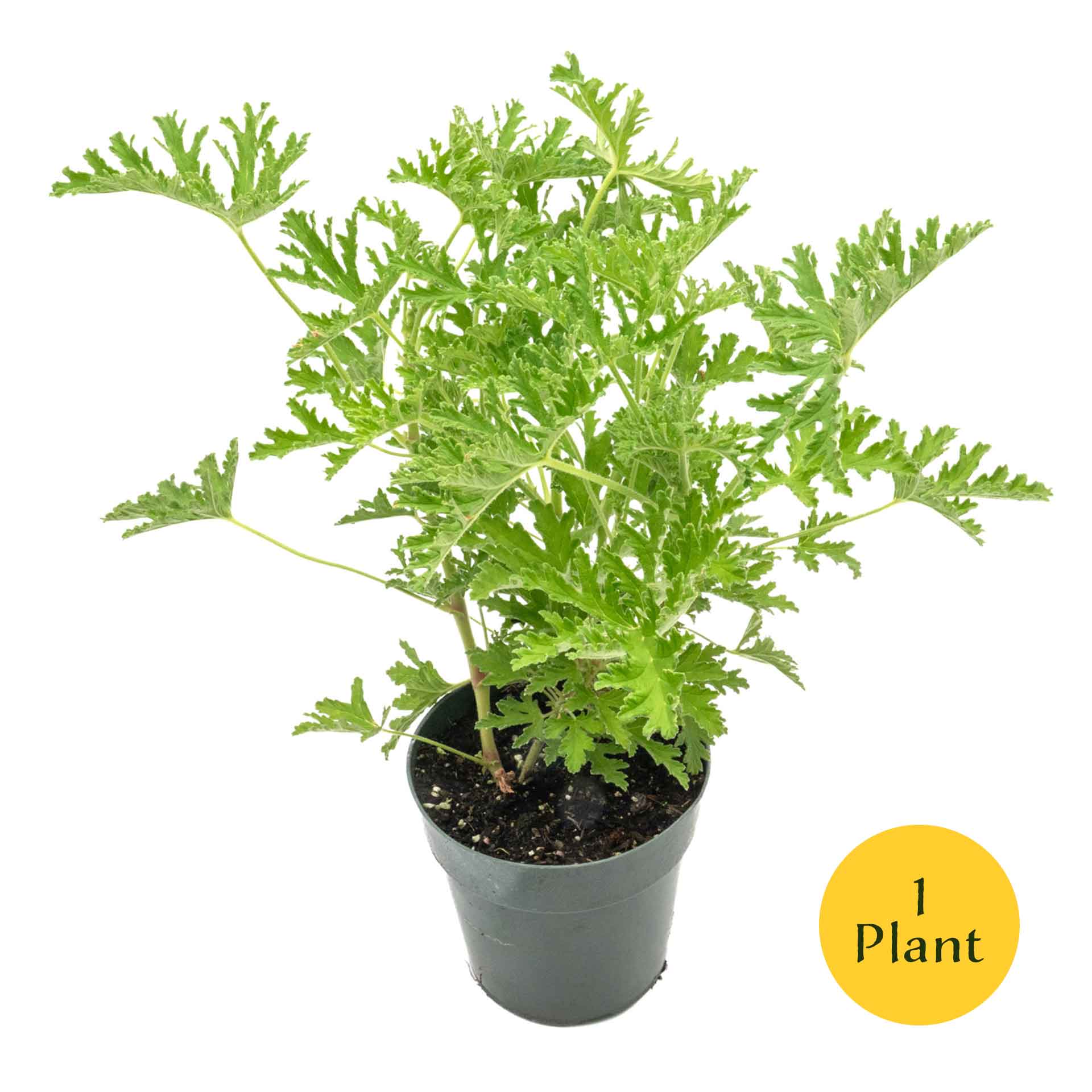 • ABOUT THIS PLANT: Fast-growing scented geranium, hardy for USDA Zones 9–11. Can mature to 1–3 ft tall and 1–2 ft wide. Thrives in full sun to partial shade and well-draining soil. Features soft green, serrated leaves that release a sharp citrus scent when crushed, and small pink flower clusters from late spring through fall.